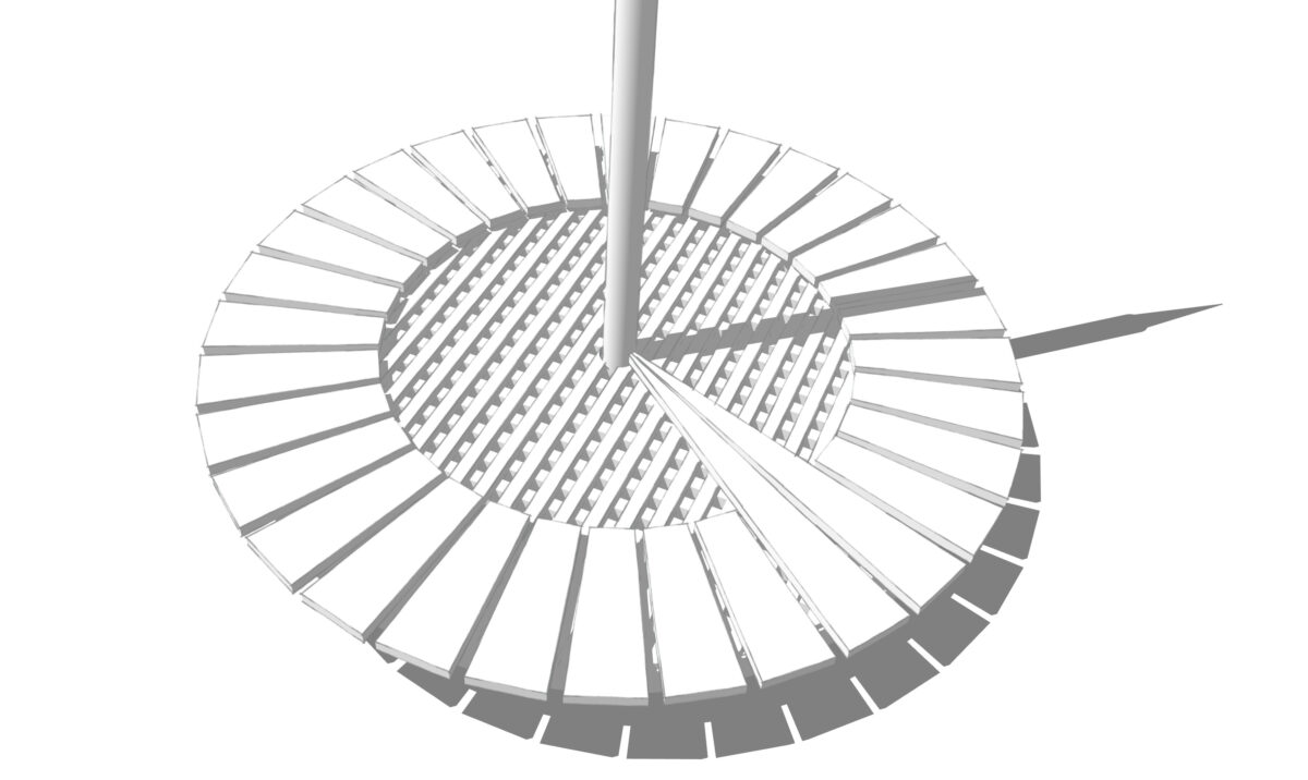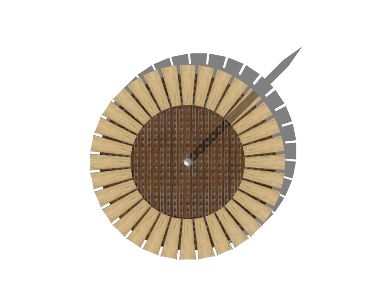 Tumbler is een kinetische installatie. Een object dat verandert van stand. De wind zorgt voor een subtiele beweging en is van invloed op de stand van de naald. De balans wordt door het eigen gewicht hersteld. Neemt een bezoeker plaats, dan verandert de stand en kan deze alleen worden hersteld door een mede bezoeker. In groepsdynamiek wordt de balans bepaalt door de onderlinge posities binnen de groep. Is de mens een verstorende factor voor het evenwicht, dan kan alleen in samenhang, in dialoog of in samenwerking evenwicht ontstaan. Zonder de mens vindt de Tumbler haar natuurlijke evenwicht. Niet alles staat in dienst van de mens.